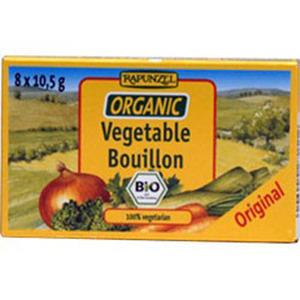 Bouillionterninger 8 tern Ø – 84gr Et godt produkt til at forfine smagen af supper, saucer og varme retter. Fri for kunstige smagsforstærker. 100% vetegarprodukt. Indhold:8 tern. Et tern giver 1/2 liter suppe. Varedeklaration Havsalt, gærekstrakt, palmefe (Læs mere)