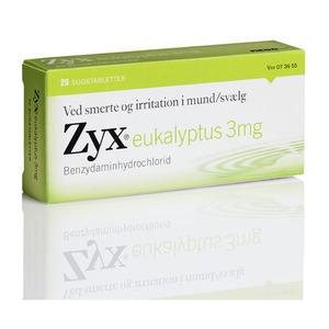 Zyx sugetabletter mod smerter og irritation i mund og hals!Zyx er en smertestillende sugetablet. Det aktive lægemiddelstof er Benzydamin. Anvendelse og virkningZyx anvendes som smertestillende til lokale smerter i hals, mund og svælg f.eks. mod halsbetænd (Læs mere)